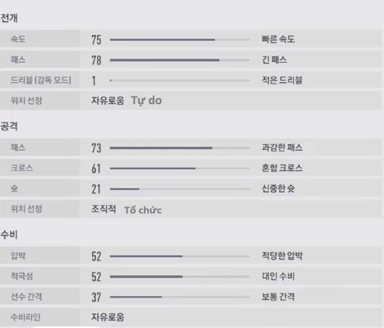 Lối chơi bóng dài cùng với điểm tạt bóng đặt khá cao, nhằm giúp cặp tiền đạo của bạn luôn xâm nhập vòng cấm khi đội nhà tổ chức tấn công. Cùng với lối chơi tổ chức hạn chế phần nào cặp đôi này di chuyển quá rộng.