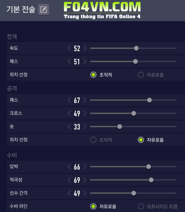 Phòng ngự tự do với áp lực lớn và quyết đoán lớn. Biên độ ở mức trung bình kéo giãn đội hình ở cự li vừa phải.