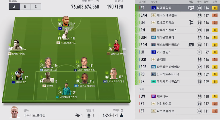 Việc sử dụng cho mình tới 3 cầu thủ của mùa giải ICON là Pires, Campbell, bergkamp, khiến quỹ lương của team bị thu hẹp lại.
