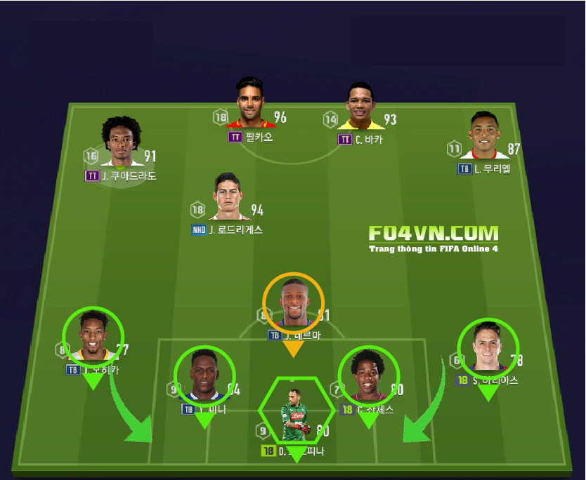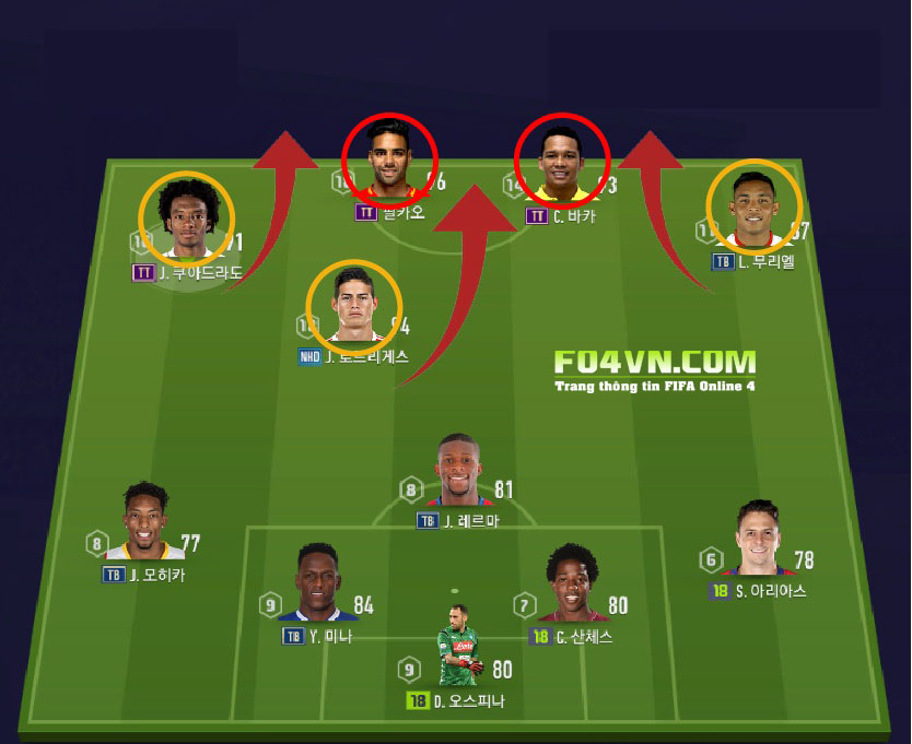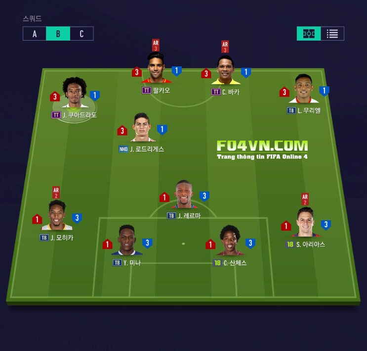 Với việc không sở hữu nhiều những cái tên chất lượng ở vị trí tiền vệ trung tâm, vậy nên sơ đồ chiến thuật của Colombia nên sử dụng trong game chính là sơ đồ 4-1-1-4.