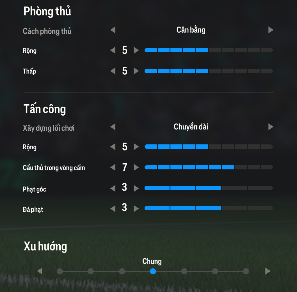 Chiến thuật cá nhân được cài đặt theo từng vị trí như hình dưới nhằm tối ưu theo chiến thuật để người chơi hậu quả.