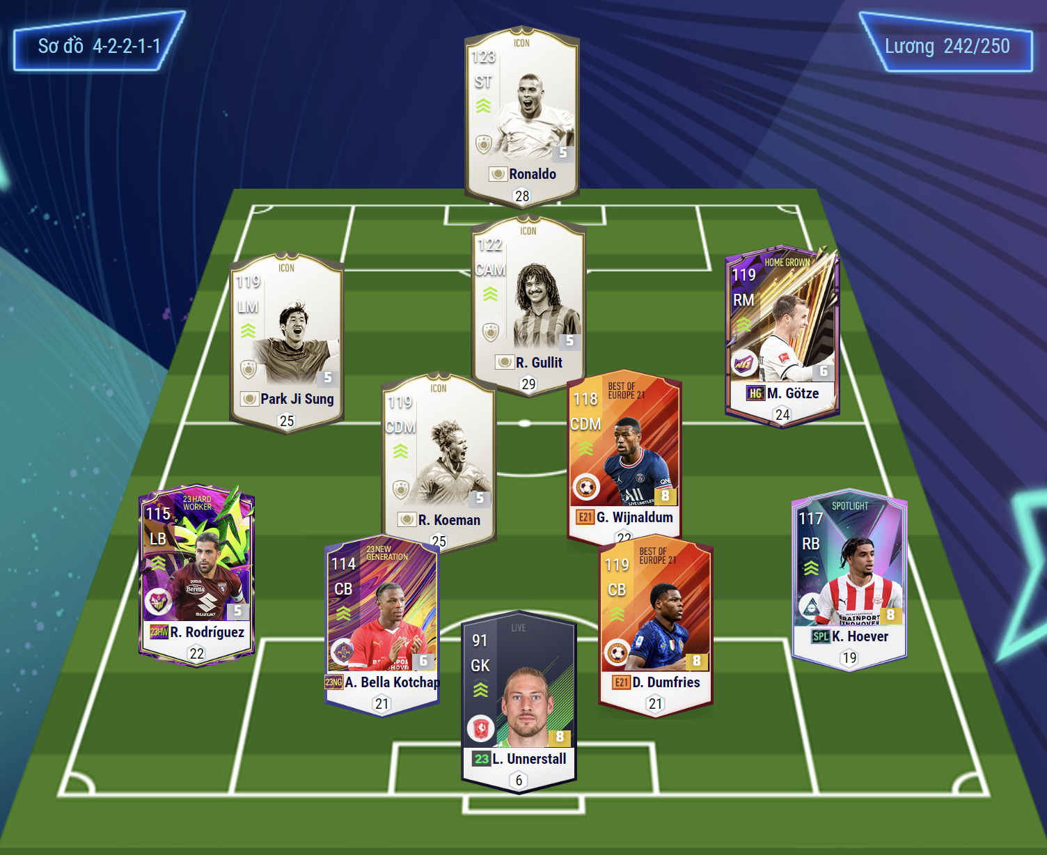vị trí tiền đạo không ai khác chính là Ronaldo, anh có thể thi đấu độc lập và là một cây săn bàn thượng hạng. Vị trí tiền vệ tấn công hỗ trợ trực tiếp cho tiền đạo cắm là Gullit, cái tên được đánh giá là toàn diện bậc nhất game khi vừa có kỹ năng tấn công lẫn phòng ngự cực kì khó chịu.