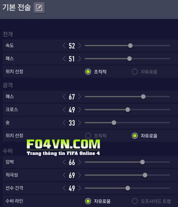 Xu hướng chơi chung có tốc độ và chuyền bóng ở mức trung bình. Thiết lập lối chơi ở chế độ tổ chức để tránh xáo trộn đội hình khi đang tổ chức triển khai lối chơi.