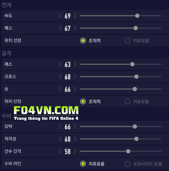 Chiến thuật tổng quát có thể được thiết lập như hình dưới với các mục như tấn công, phòng ngự hay tổng quát đều ở trên mức trung bình.