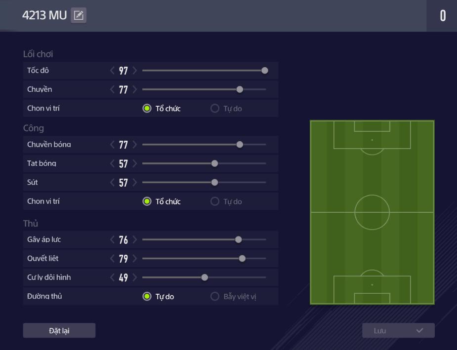 Dưới đây là bảng chiến thuật đơn cho từng vị trí :
