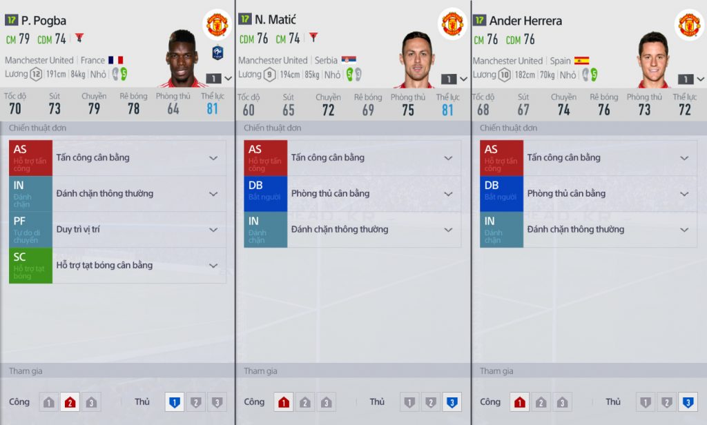 CDM / Matic - Herrera : Đây là một sự lựa chọn bắt buộc và gần như không còn sự thay thế. Cho dù họ đá không tốt thì bạn cũng chỉ có thể thay thế bằng một cầu thủ kém hơn là Fellaini, Và điều đó không thực sự khả thi.