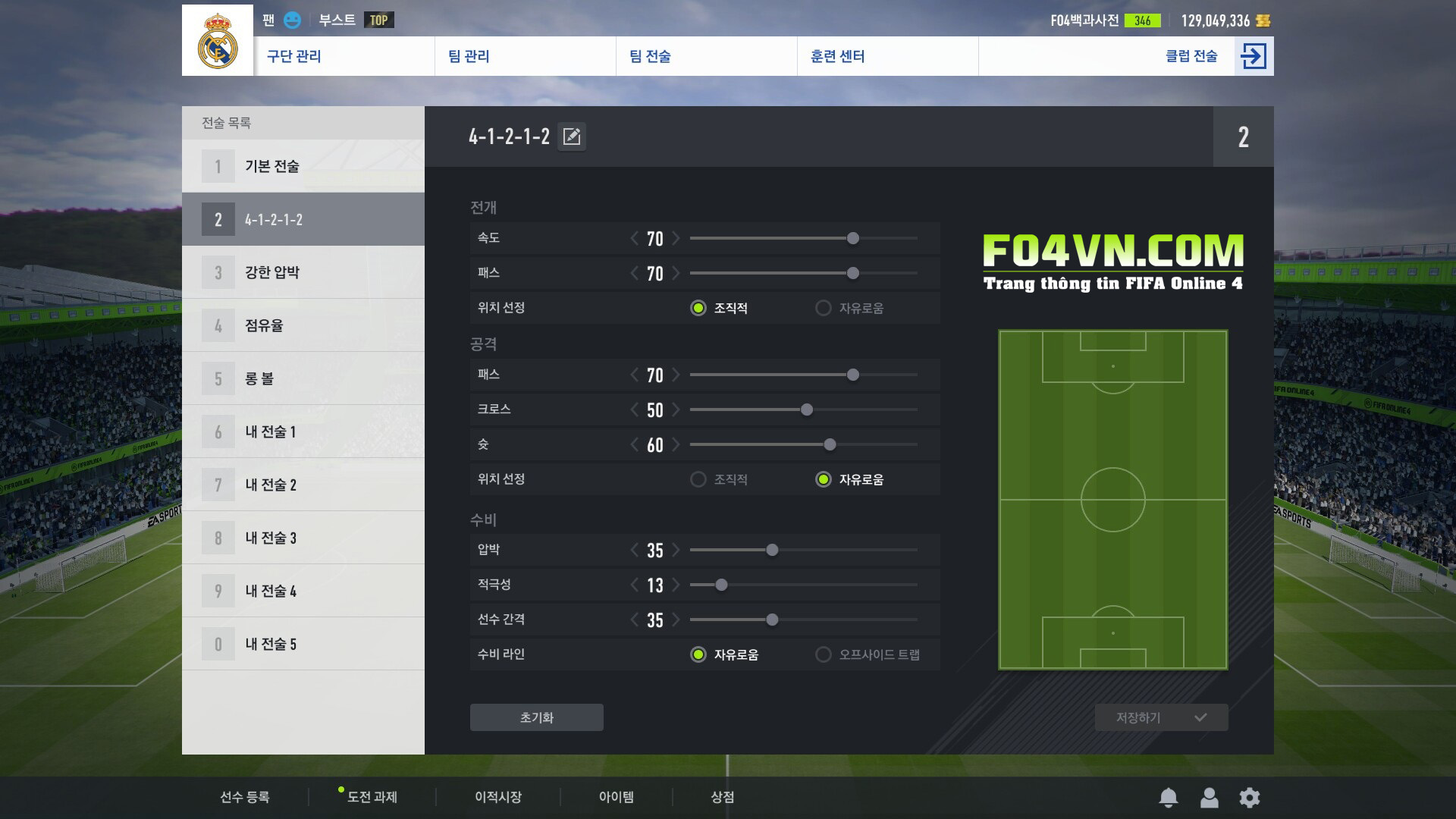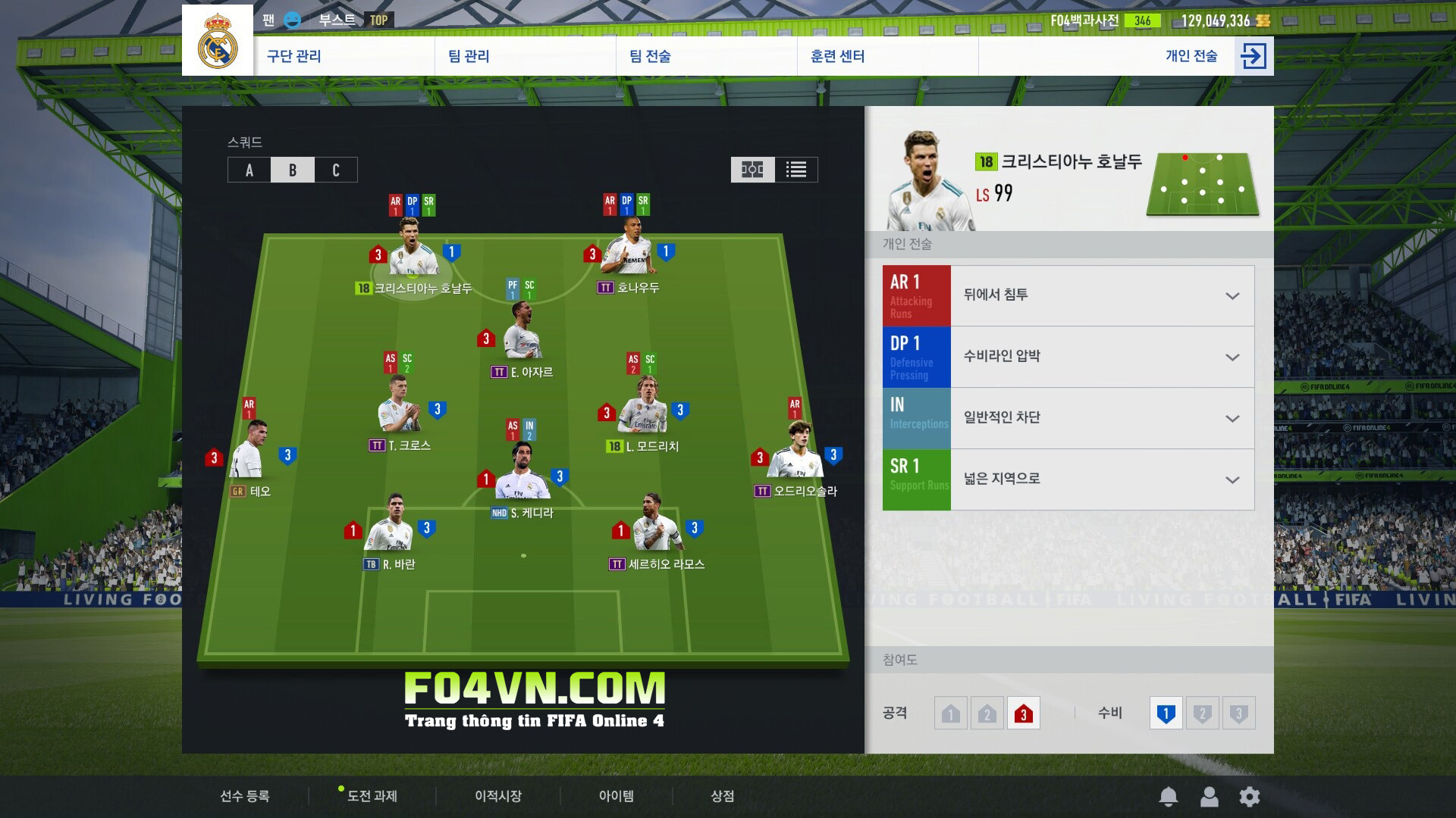 - CAM : PF1 di chuyển tự do. SC1 tham gia vào các tình huống tạt bóng. Xu hướng chơi 3-2.