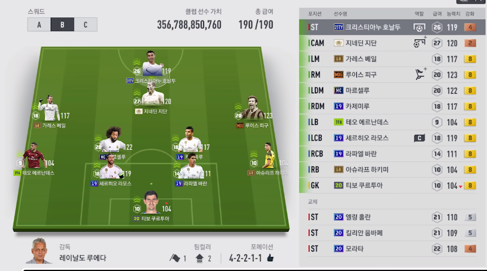 Đây là một sơ đồ khá tối ưu khi bạn có thể sỡ hữu cho mình một ICON là Zindane trong đội hình, một Ronaldo 21TY mà quỹ lương vẫn đảm bảo 190