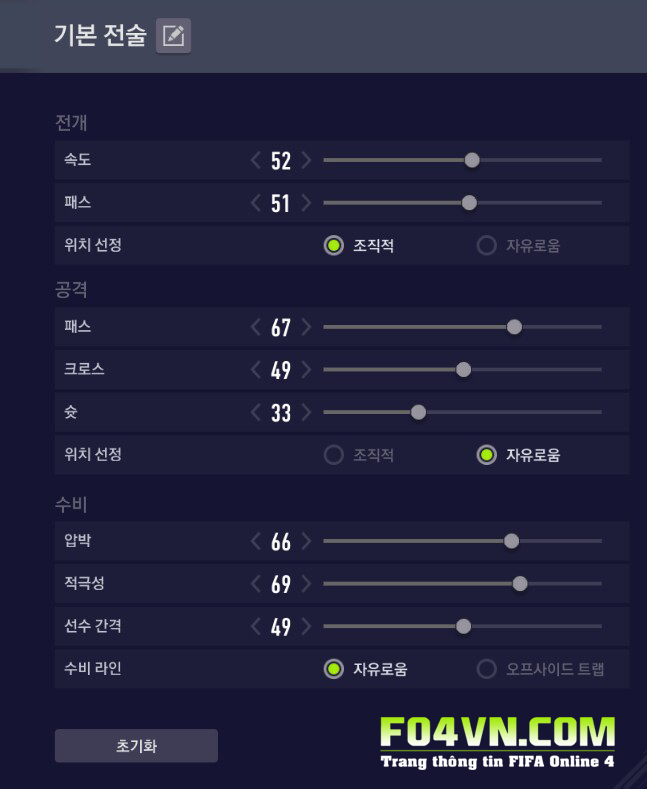 Cách thiết lập sơ đồ lối chơi như hình phía dưới nhằm tối ưu hóa các vị trí cũng như lối chơi chung của toàn đội.