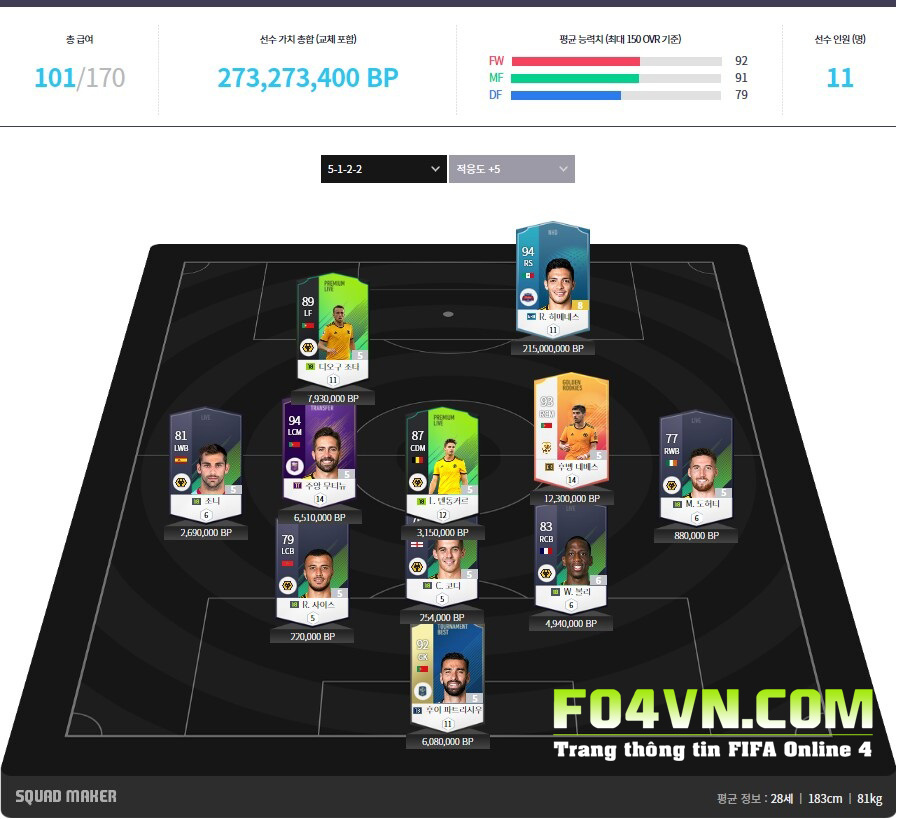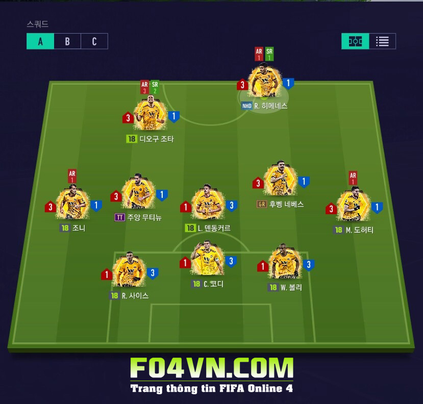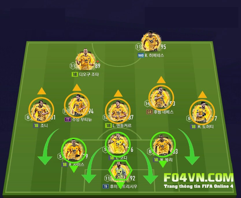 Sơ đồ chiến thuật nên dùng cho các cầu thủ Wolver chính là sơ đồ 5-1-2-2 như hình.
