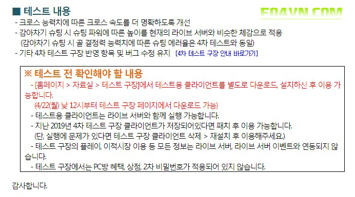 Cách đây ít phút, GM Gunner - admin của FIFA Online 4 Server Hàn Quốc đã đăng tải thông tin thông báo chính thức về lần thử nghiệm gameplay thứ 5 nhằm mục đích kiểm tra và đưa đến những chỉnh sửa cuối cùng để hoàn thiện tối đa gameplay mới.