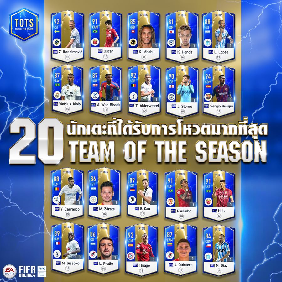 Ngày hôm qua trên fanpage của FIFA Online 4 Thái Lan đã chính thức đưa thông tin về thẻ mùa giải 19TS với 20 cái tên do người chơi tại máy chủ này vote. Đáng chú ý có những cái tên tưởng trừng đã rơi vào quên lãng như Honda, Zarate...