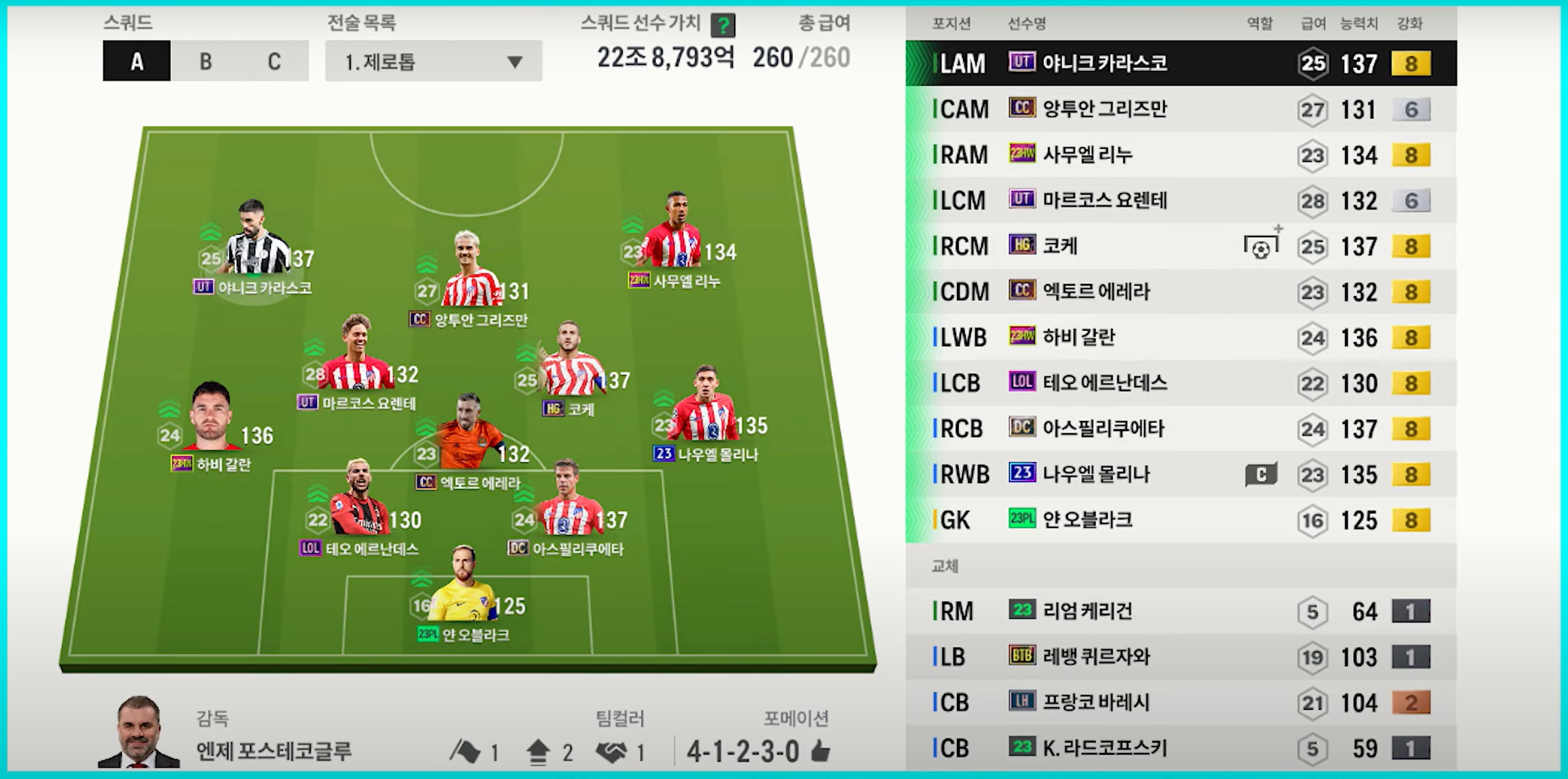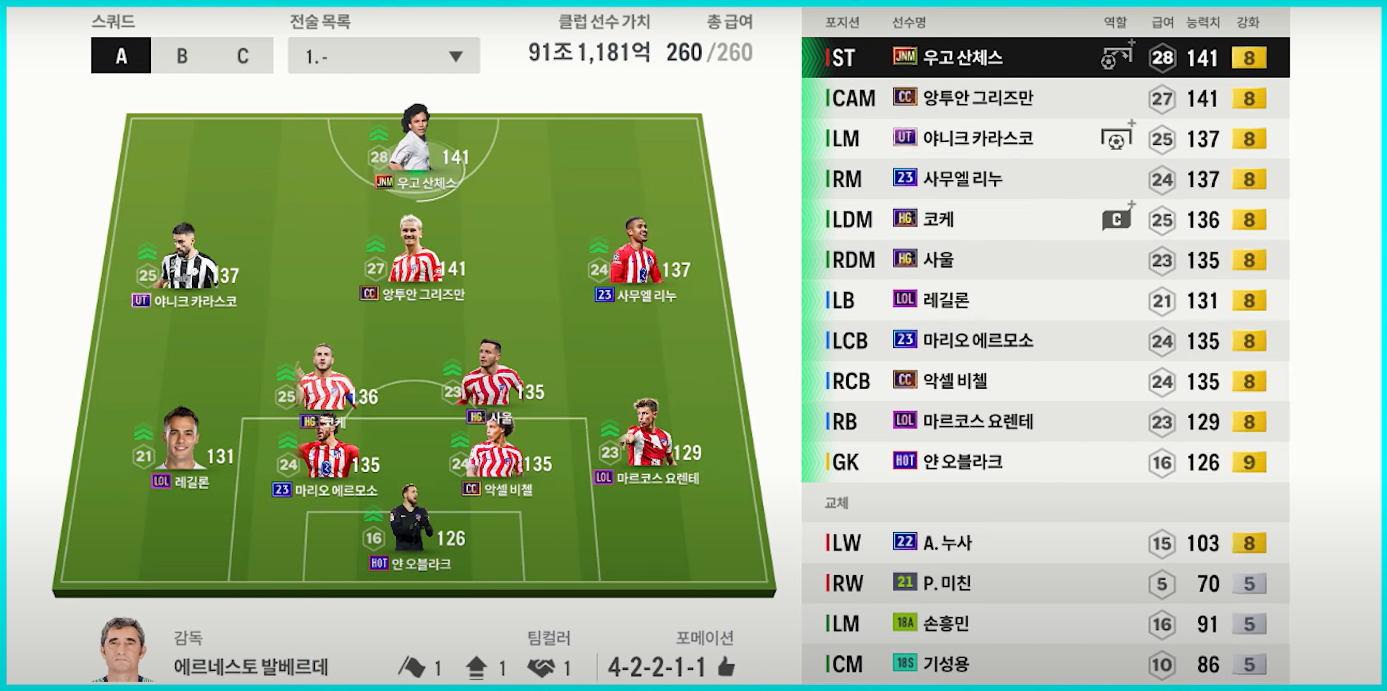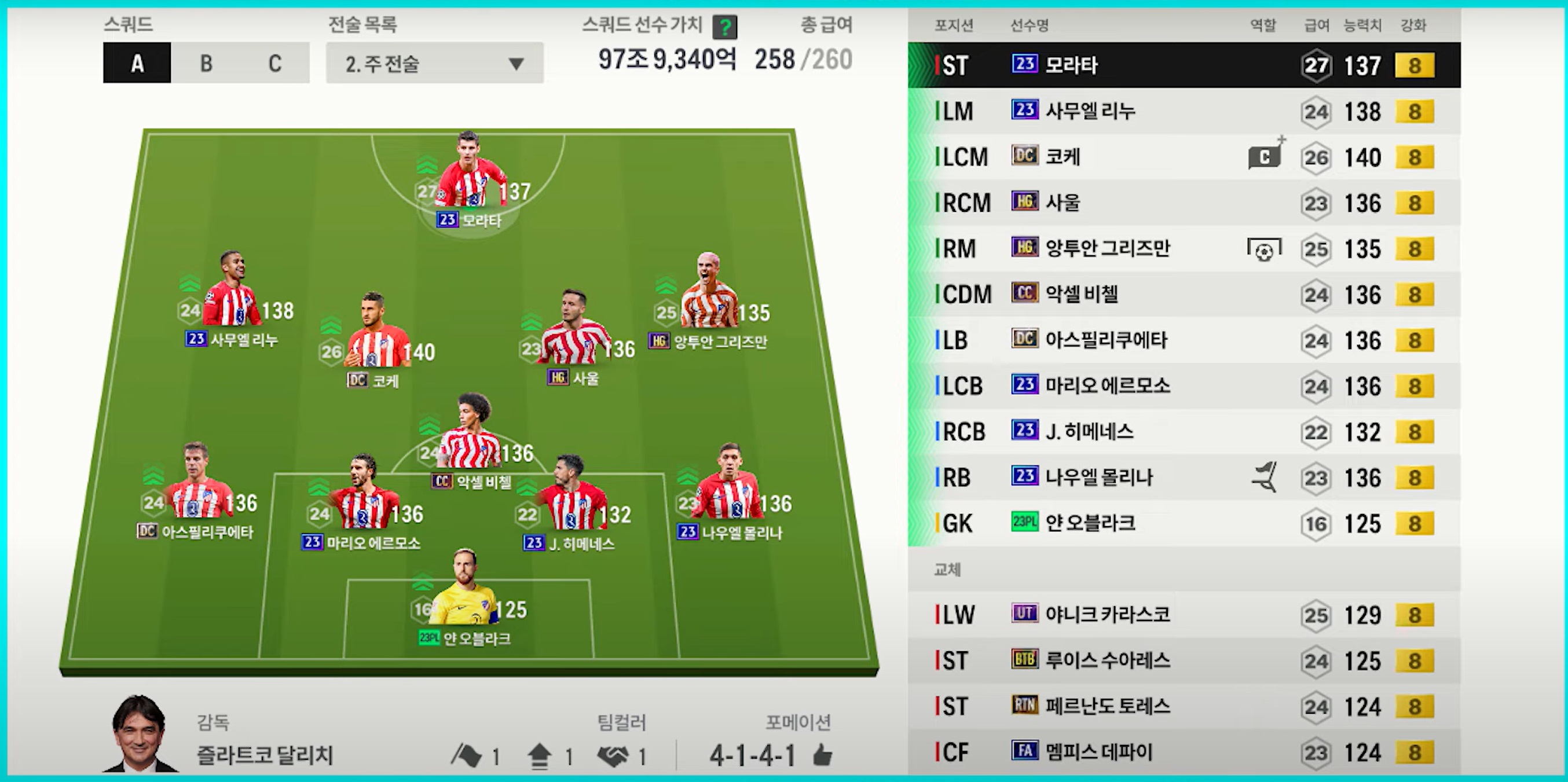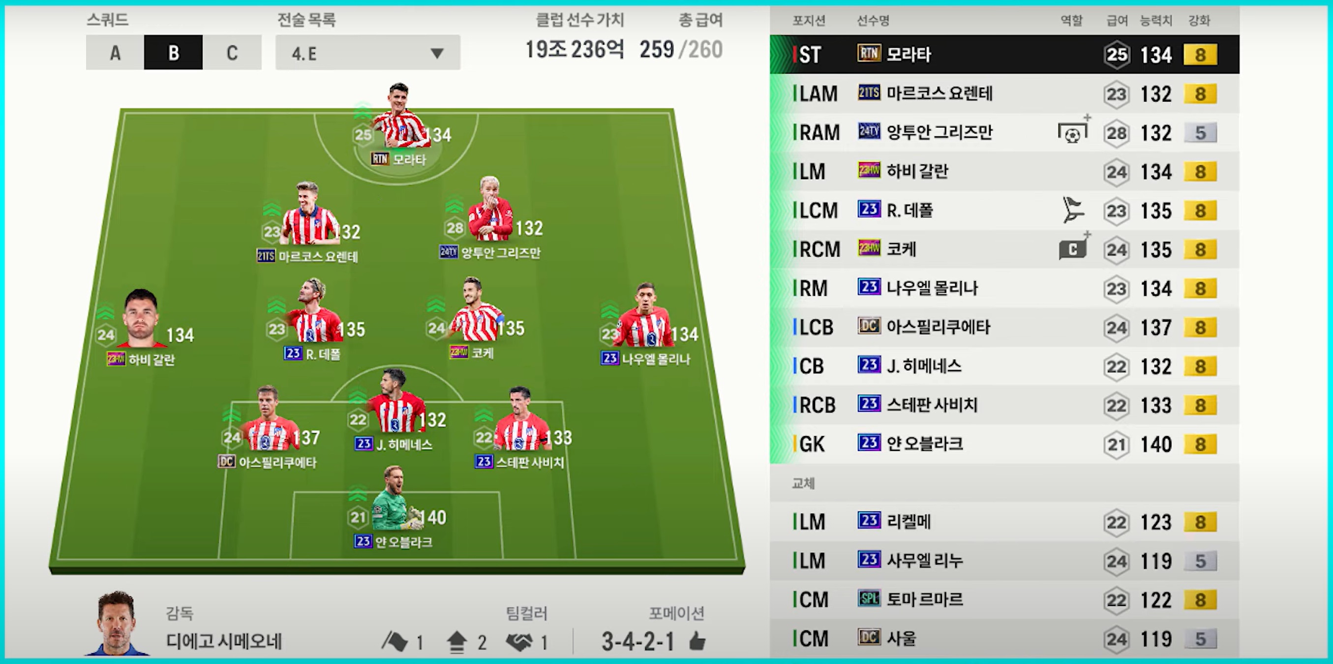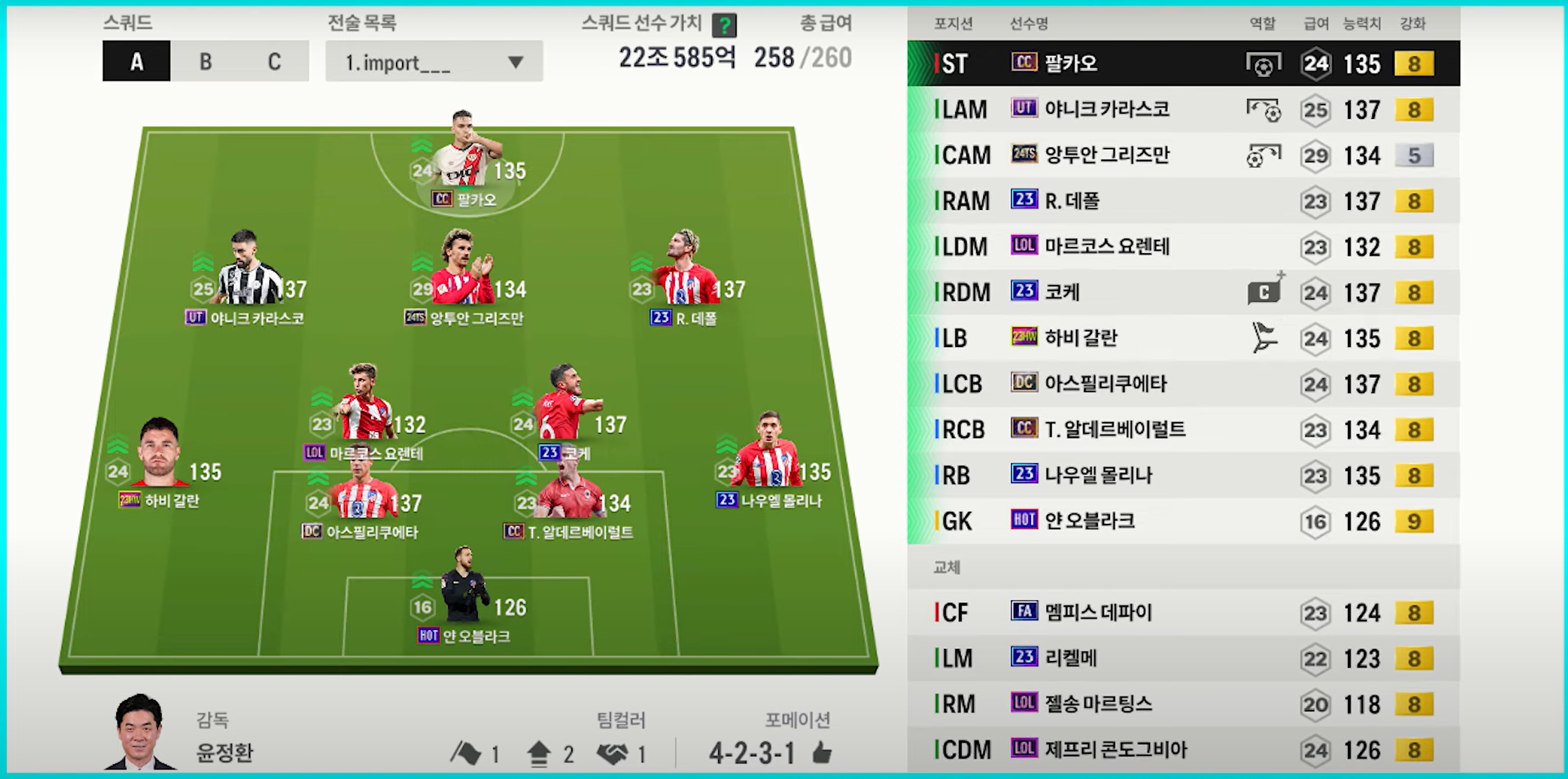 Atletico Madrid được đánh giá là một team color khá mạnh nhưng kén người dùng bởi chất lượng cầu thủ của họ không quá đa năng mà có phần hơi đặc trưng. Chính vì vậy việc người chơi phù hợp với team color là rất quan trọng.