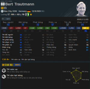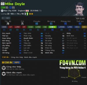 Mike Doyle trong gameBert Trautmann (OVR 95, lương 17, vị trí: GK)