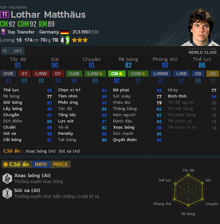 So với thẻ mùa giải NHD thì mùa giải TT có chỉ số bá đạo hơn rất nhiều, vì đây là lúc mà các huyền thoại măng non thuở nào đã trưởng thành hơn. Và trở thành những nhân tố chính trong thành công của CLB mà họ thi đấu. Hãy cũng điểm qua những con hàng "chất như nước cất" của mùa giải TT. Dù biết rằng ngày mùa giải này về Việt Nam vẫn còn khá xa.