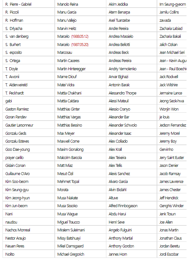 4. Cập nhật sự nghiệp CLB cho 487 cầu thủ tới khi đóng cửa thị trường chuyển nhượng cuối cùng vào ngày 31/8 vừa qua, ví dụ như Marcelo trước đây chỉ hiện 2022 là Real Madrid thì giờ sẽ chuyển thành 2007-2022 : Real Madrid