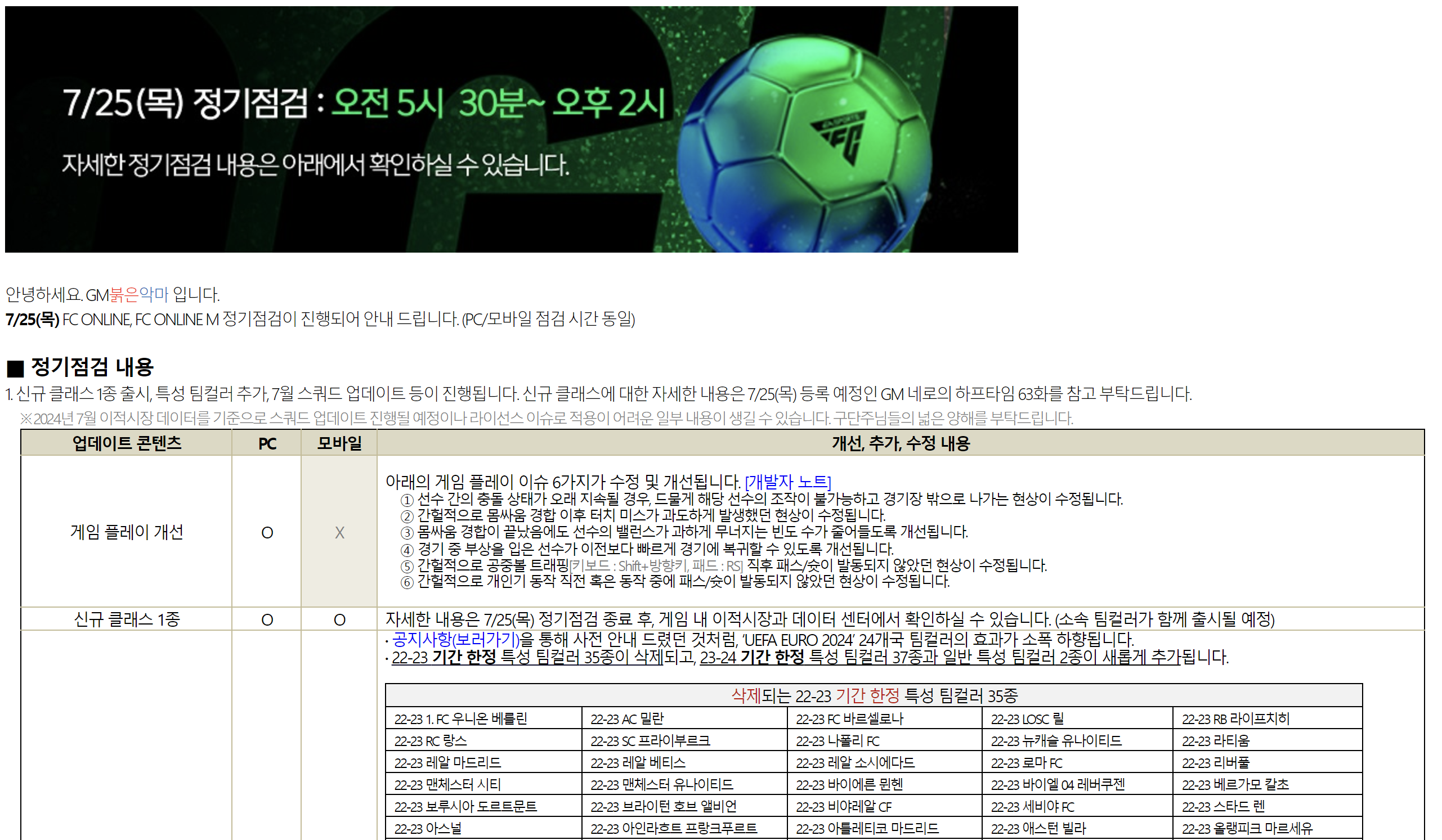 Ngày 25/7/2024, FC Online Hàn sẽ chính thức đưa ra bản cập nhật tiếp theo nhằm thay đổi và sửa lỗi nhiều vấn đề game đang gặp phải ở meta 10.0. Đây được xem là bước cập nhật quan trọng nhằm giúp cải thiện trải nghiệm chơi game của các HLV.