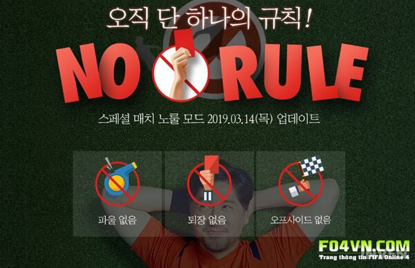 Sẽ rất thú vị phải không nào. Ở chế độ No Rule, những luật lệ thường thấy trong sân sẽ bị loại bỏ, bạn sẽ không có những tình huống bị thổi phạt, sẽ không có việc trọng tài rút thẻ dù cho bạn phạm bất kì lỗi nào và đặt biệt bạn hoàn toàn có thể kéo cả đội lên tít bên phần sân đối phương mà không hề bị trọng tài biên căng cờ việt vị khi tấn công. Bạn hoàn toàn không phải lo lắng và thỏa sức sáng tạo lối chơi theo bất kì cách thức nào mà bạn muốn bởi đây không còn là bóng đá truyền thống nữa.