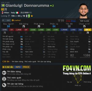 tài năng trẻ kỳ vọng là người kế tục Buffon tại đội tuyển Italia là một cái tên không còn xa lạ với khán giả fo4. Điểm mạnh nhất của Donna là khả năng khép góc trong những tình huống đối mặt, tuy nhiên lại dính quả ngáo ngơ trong những pha bóng lộn xộn hay thi thoảng bóp hậu vệ đội nhà một tý. Có lẽ ảnh hưởng khá nặng từ phong cách của Neuer.