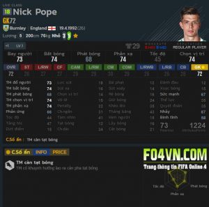 Một cái sào thực sự trên sân. Pope được đồn thổi là có độ ảo kinh hồn. Bắt sút xa ảo, tuy nhiên không bắt được dính bóng, đa phần là đẩy bóng ra vạch 5m, thêm vào đó là không chỉ số ẩn ném xa, Nếu không để ý bạn hoàn toàn có thể ném thẳng bóng vào chân của tiền đạo của đội bạn và chuyển từ tình huống phản công sang chuyên mục bắt bóng cùng những người bạn. thủ thành người Anh, chỉ làm tốt ở hạng mục chống bước 1 như Van der Sar ở fo3 trước đây, nhưng đổ người khá tệ. Thêm vào đó độ ngáo đã được qua kiểm định. "Trừ những lúc ngáo ra thì đều ổn cả".
