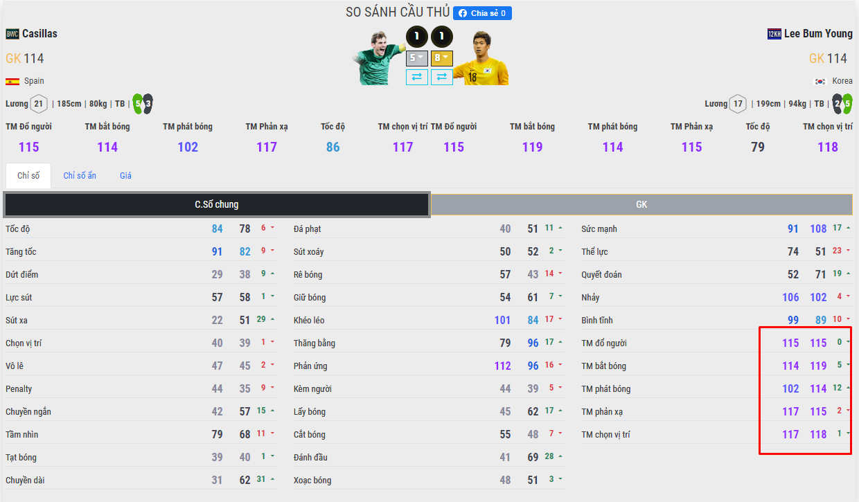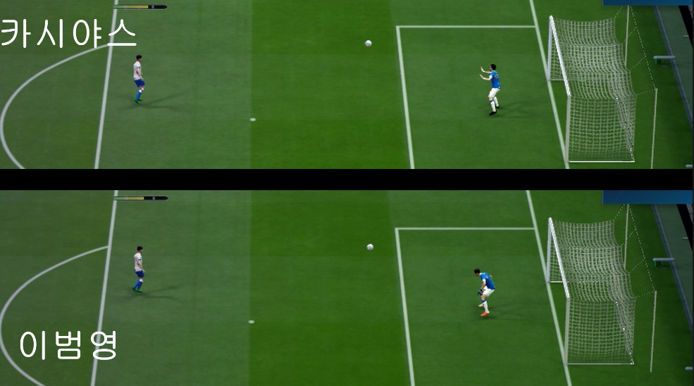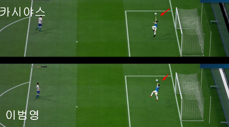 Đây là hai thủ môn có chiêu cao khá chênh lệch, trong khi Casillas có chiều cao 1m85 thì Lee Bum Young là 1m99 rất cao, ngang ngửa với Courtois. Ở cùng một góc sút, lực sút, cùng cầu thủ sút bóng, hướng sút bóng thì chúng ta sẽ cùng xem hành động của hai thủ môn phản xạ như sau