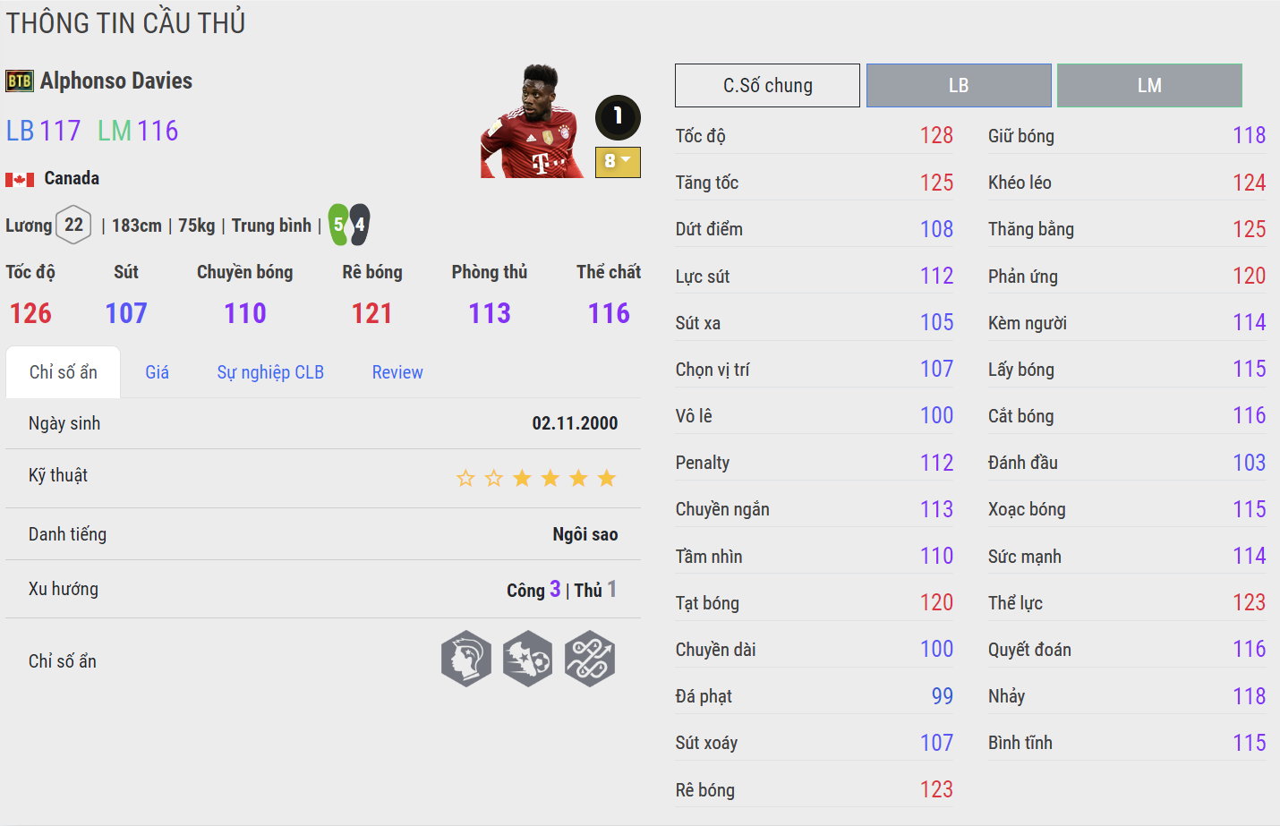 Alphonso Boyle Davies là một cầu thủ bóng đá chuyên nghiệp người Canada hiện đang thi đấu ở vị trí hậu vệ trái hoặc tiền vệ cánh cho câu lạc bộ Bundesliga Bayern Munich và là đội trưởng của đội tuyển bóng đá quốc gia Canada.