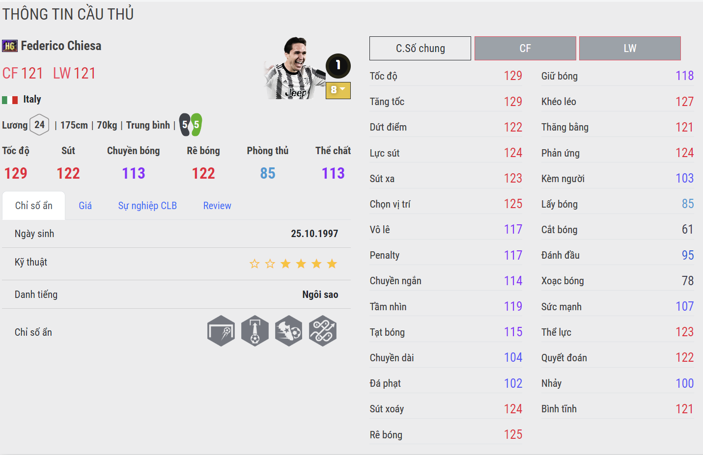 Federico Chiesa là một cầu thủ bóng đá chuyên nghiệp người Ý chơi ở vị trí tiền đạo cánh cho câu lạc bộ Juventus tại Serie A và đội tuyển bóng đá quốc gia Ý. Sau Euro 2021, Chiesa liên tục gặp phải chấn thương và xuống phong độ khiến cho chính Juventus cũng đang mất dần kiên nhẫn với anh.
