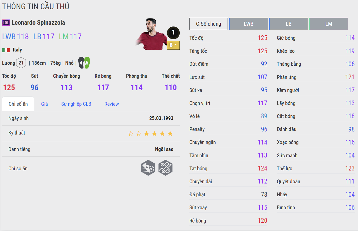 Spinazzola phiên bản LOL +8 là một phiên bản mà hậu vệ người đức thi đấu cực kì đa năng và xuất sắc. Anh không chỉ chơi tốt ở vai trò phòng ngự mà còn là mẫu hậu vệ có khả năng hỗ trợ tấn công cực kì sắc nét.