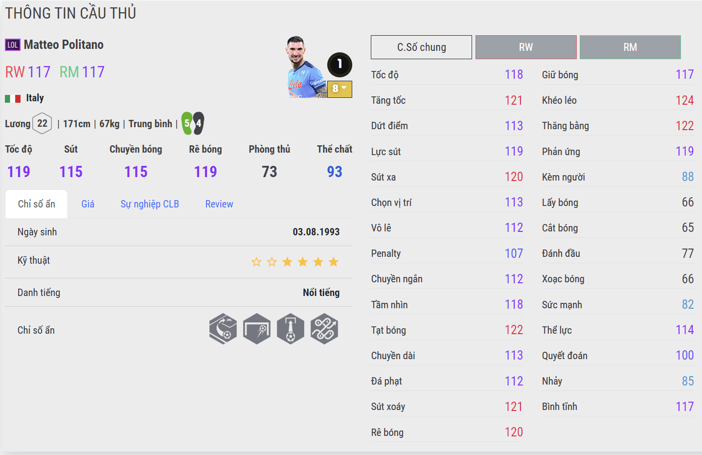 Politano LOL +8 đang là một trong những hiện tượng cho vị trí chạy cánh thời gian gần đây tại rank Hàn. Politano cho thấy sự nổi bật về khả năng chơi bóng khi có khả năng tấn công đa dạng và nhiều team color chất lượng như Roma, Inter, Napoli
