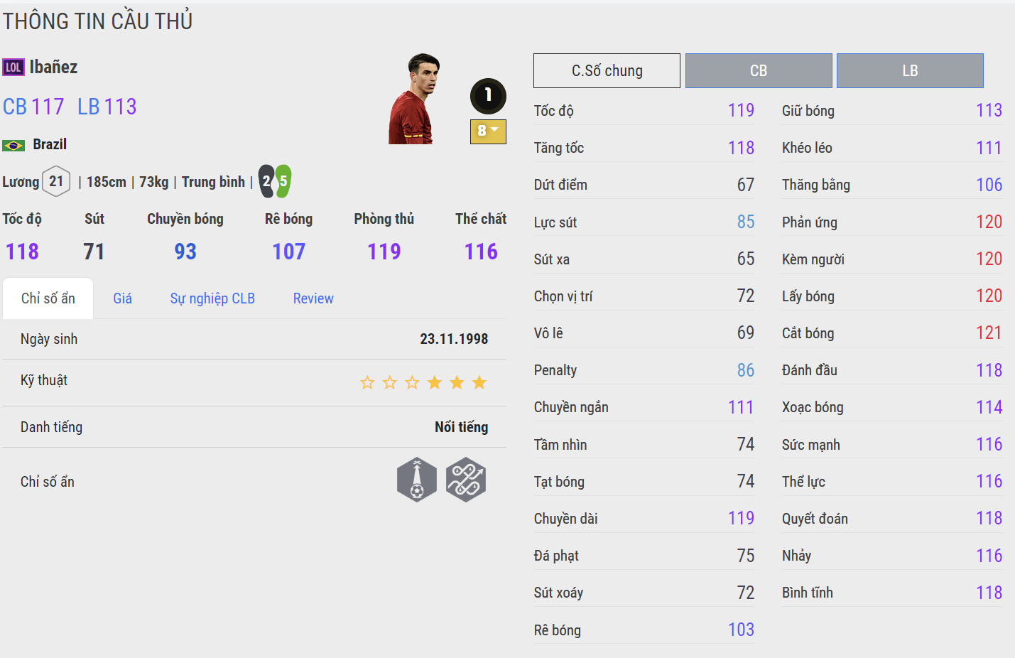 Ibanez là mẫu trung vệ rất đáng quan tâm ở mùa thẻ LOL +8 bởi nhiều ưu điểm cũng như sự linh hoạt tốt và AI thông minh. Đó là lí do anh có tỉ lệ pick cực cao ở rank 1vs1 Hàn Quốc trong nhiều team color khác nhau.