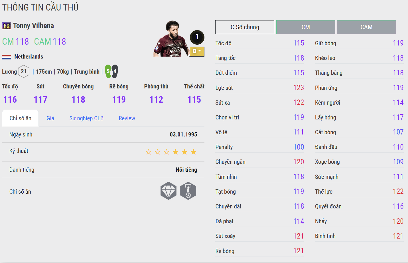Tonny Vilhena có lối chơi với nhiều điểm tương đồng so với Essien. Anh từng được coi là một trong những tài năng sáng giá của lò đạo tạo Feyenoord và bóng đá Hà Lan, anh sở hữu tốc độ rất tốt, không quá xuất sắc nhưng đủ dùng trong các tình huống lên công về thủ và pressing liên tục trước đối thủ.