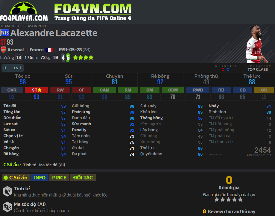 - Di chuyển : Lacazette di chuyển rất hay, anh hút người rất tốt và trở thành một vệ tinh tấn công cực kì khó chịu.