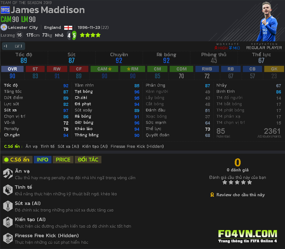 Mùa giải vừa qua là một mùa giải tương đối thành công đối với anh ở Leicester City.Việc anh có mùa giải 19TOTS là cực kỳ xứng đáng. Vậy trong game anh sẽ thể hiện ra sao.