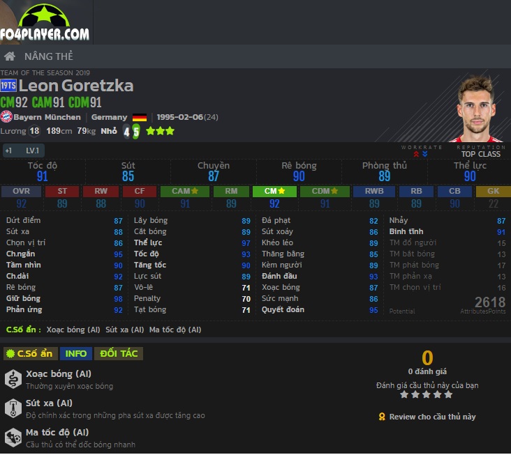 Với việc thể hiện tốt trong màu áo Bayern Munich, Goretzka mùa giải vừa qua nằm trong danh sách những cái tên thi đấu xuất sắc nhất. Vậy Goretzka 19TS thể hiện ra sao? Hãy cùng FO4VN.COM tìm hiểu ở bài viết dưới đây.