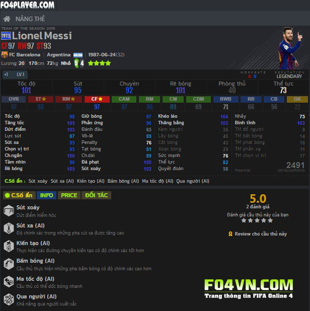 Thẻ 19TS mô tả mùa giải vừa qua khi anh cùng Barca giành lấy chức vô địch Laliga. Vậy thẻ Messi 19TS trong game thể hiện ra sao? Hãy cùng FO4VN.COM tìm hiểu trong bài viết dưới đây.