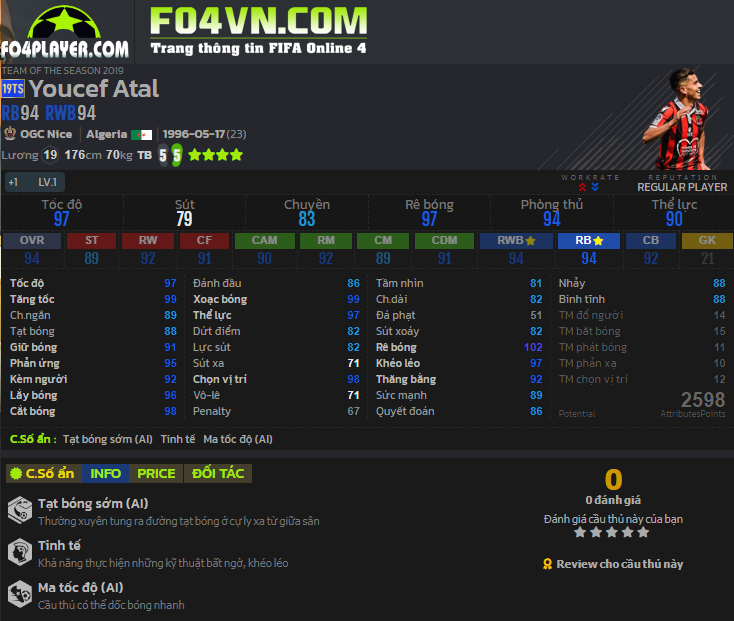 Atal đá hậu vệ biên rất tốt và hoàn toàn có thể để Atal đá ở cả 2 biên bởi anh thuận cả 2 chân. Tuy nhiên, bạn cũng hoàn toàn có thể để Atal đá ở vị trí tiền vệ RM,LM để phát huy khả năng hỗ trợ tấn công của Atal.