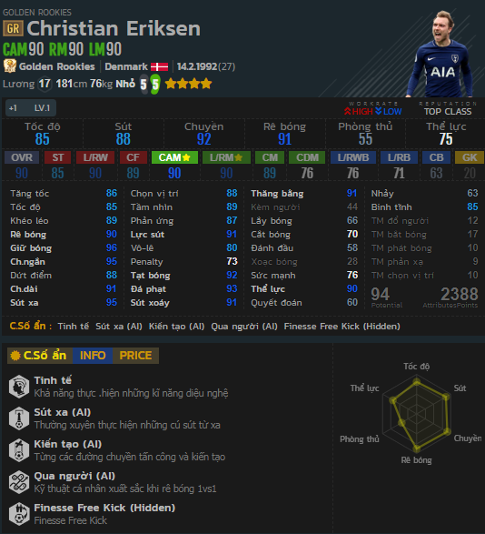 C.Eriksen - Chỉ số trong game