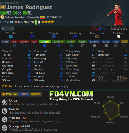 J.Rodriguez - Chỉ số trong game