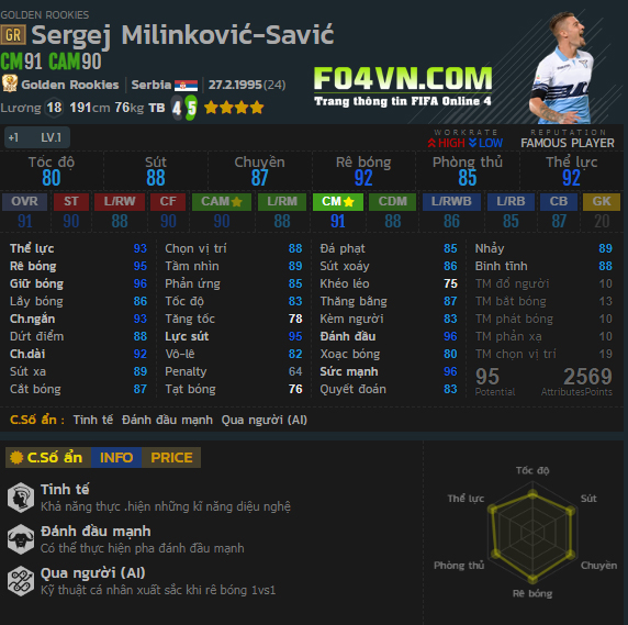 Mùa giải GR của Milinkovic-Savic có bộ chỉ số rất cao và cũng khá đồng đều. Vậy Milinkovic-Savic thể hiện trong game ra sao? Hãy cùng FO4VN.COM tìm hiểu ở bài viết dưới đây