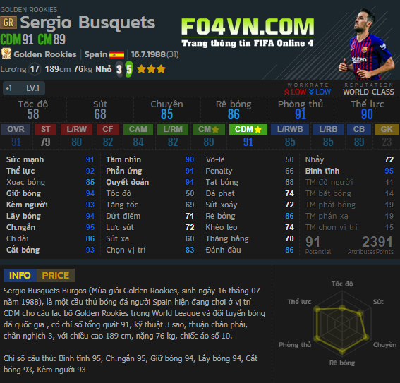 Busquets là mẫu tiền vệ thông minh với lối chơi đơn giản mà hiệu quả cao. Nếu bạn là fan Barca thì có thể cân nhắc để đưa chàng cầu thủ này về với đội hình của mình nhằm có thêm những trải nghiệm tích cực.