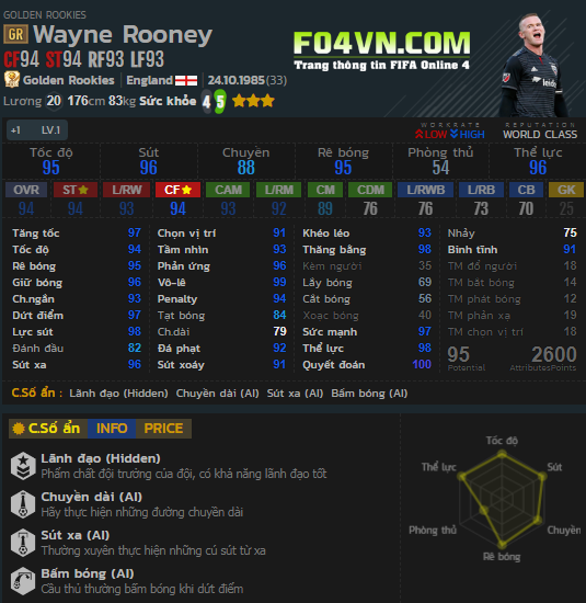 Mùa giả GR của Rooney xuất hiện trong game được coi như một sự hồi sinh của anh chàng này trong tựa game FO4. Hôm nay hãy cùng FO4VN.COM review về một trong những cầu thủ được săn đón bậc nhất game thời điểm hiện tại nhé.