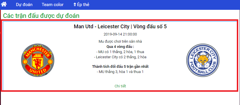 Hiển thị thời gian dự kiến dự đoán trận đấu đó