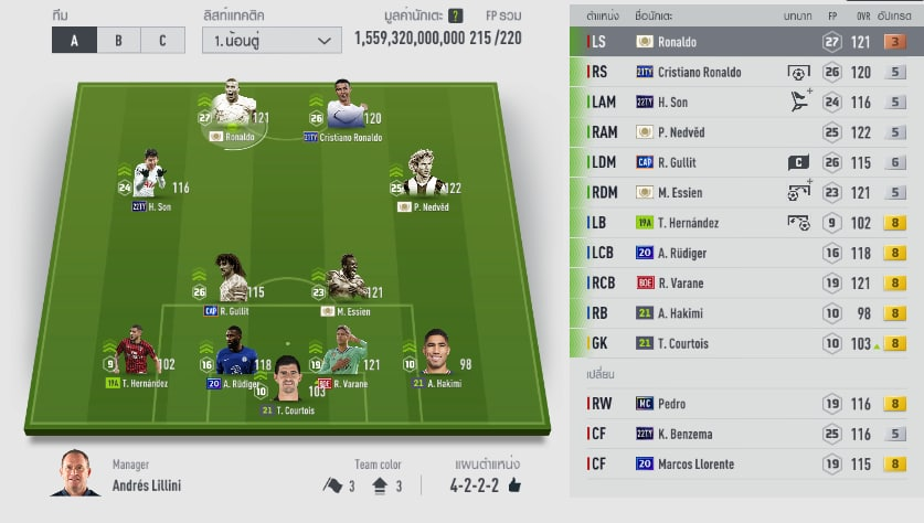 Những người Thái đang là đương kim vô địch của các giải đấu FIFA Online 4, hãy cùng xem khi lương lên 220 thì các top đầu của họ thay đổi đội hình như nào nhé.