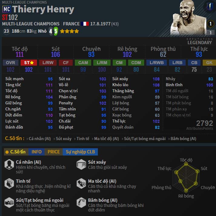Con trai của thần gió là mẫu ST chưa bao giờ lỗi thời từ Fo3 đến Fo4. Nhanh và tinh tế, khống chế bóng gọn gàng. Đừng bao giờ để khoảng trống cho Henry băng xuống. Với kỹ năng dứt điểm thượng thừa, sẽ là cực kỳ nguy hiểm nếu Henry có cơ hội để dứt điểm, Điểm trừ duy nhất của anh chỉ là trong game để anh thể hình gầy mà thôi, nhưng bù lại khả năng xoay sở lại cực tốt