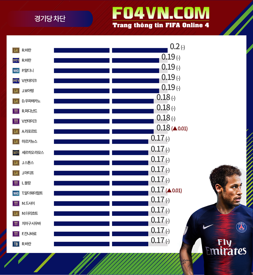 Sau những top dứt điểm và top chuyền bóng xuất sắc nhất FO4 thời điểm hiện tại, chúng ta sẽ đến với những thông số dành cho các cầu thủ phòng ngự bao gồm top 20 cắt bóng và cản phá khét.