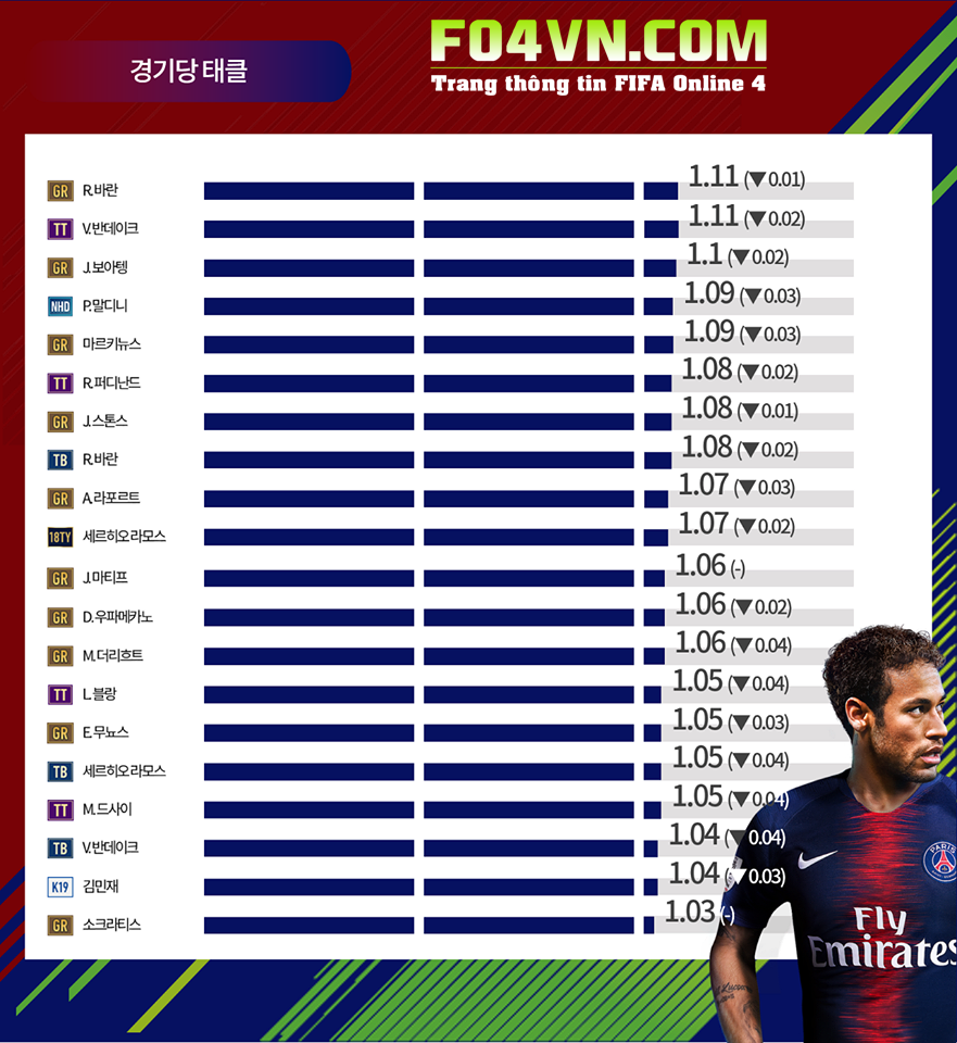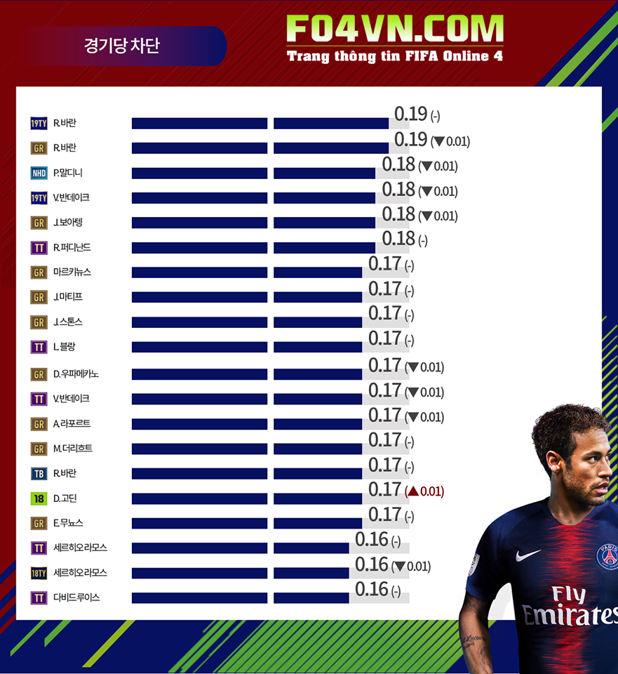 Danh sách thống kê top 20 cầu thủ có khả năng cản phá bóng tốt nhất đã được FIFA Online 4 Hàn Quốc công bố trên trang Fanpage. Trong đó, nhiều cái tên đã được hoán đổi vị trí cho nhau và một vài cái tên thì vẫn giữ cho mình vị trí trên bảng xếp hạng. Vậy, top 20 cầu thủ cản phá tháng 4 bao gồm những ai? hãy cùng tìm hiểu xem : Top 20 cầu thủ cắt bóng khét nhất  R.Varane GR V.Van Dijk TT J.Boateng GR P.Maldini NHD  Marquinhos GR R.Ferdinand TT J.Stones GR R.Varane TB A.Laporte GR Sergio Ramos TOTY18 J.Matip GR D.Upamecano GR M.De Ligt GR L.Blanc TT E.Munoz GR  Sergio Ramos TB M.Desailly TT V.Van Dijk TB Cầu thủ hàn quốc  Sokratis GR Top 20 cầu thủ cản phá khét nhất R.Varane TOTY19 R,Varane GR P.Maldini NHD V.Van Dijk TOTY19 J.Boateng GR R.Ferdinand TT Marquinhos GR J.MatIp GR J.Stones GR L.Blanc TT D.Upamecano GR V.Van Dijk TT A.Laporte GR M.De Ligt GR R.Varane TB D.Godin PL  E.Munoz GR Sergio Ramos TT Sergio Ramos TOTY18 Thiago Silva TT Xem thêm : Team MU All Star Team All-Star Nigeria  Team Juventus All-star Team Tottenham All-Star Team Colombia All-Star Team Ukraine All-Star Team Liverpool All-star Team Barcelona All-Star Team Inter Milan All-Star Team Italia All-Star Team Brazil All-Star