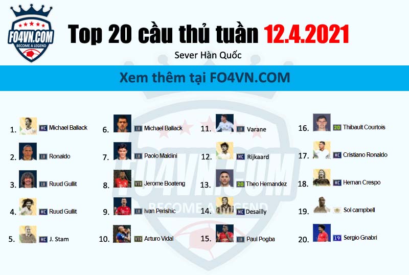 - Sol Campbell ICON lần đầu có mặt trong top. Trung vệ huyền thoại này có thể hình lý tưởng, không rõ có phải do bản test gameplay 6.0 mà nhiều người sử dụng anh hay không?