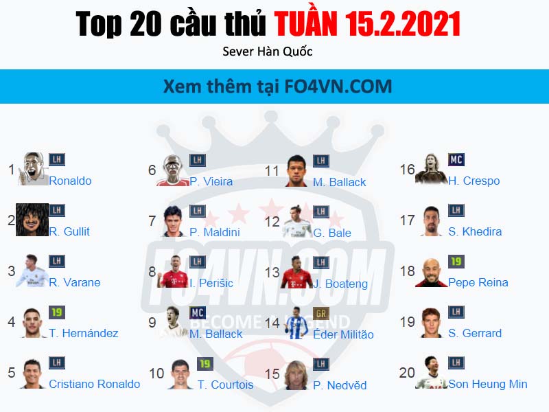 - Cristinal Ronaldo LH đã có mặt trong top sau một thời gian dài vắng bóng, có lẽ việc buff đánh đầu đã đưa một sát thủ toàn diện như Ronaldo quay lại