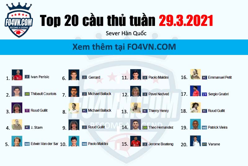 Sau một tuần nhiều biến động, chúng ta đến với danh sách 20 cầu thủ được dùng nhiều nhất tuần qua do nexon công bố