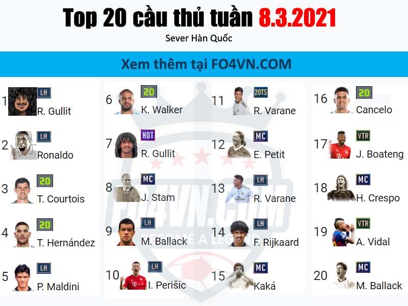 - Cái tên đáng chú ý nhất là Boateng VTR, khi cầu thủ này luôn được các fan thắc mắc giữa LH hay VTR. Thì nay đã thấy VTR xuất hiện trong bảng xếp hạng tuần này